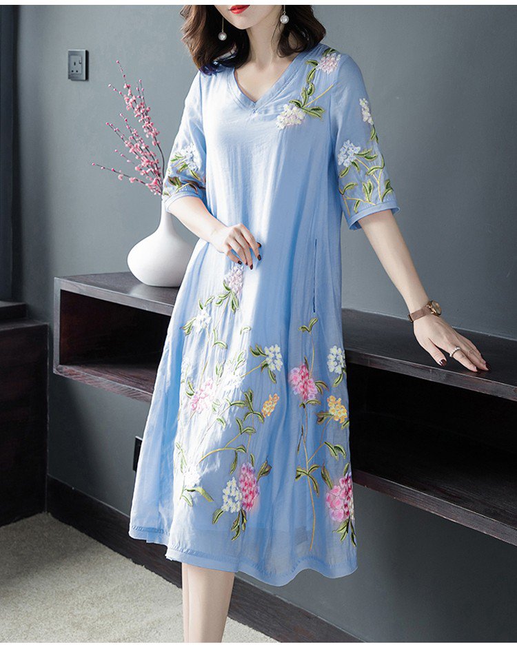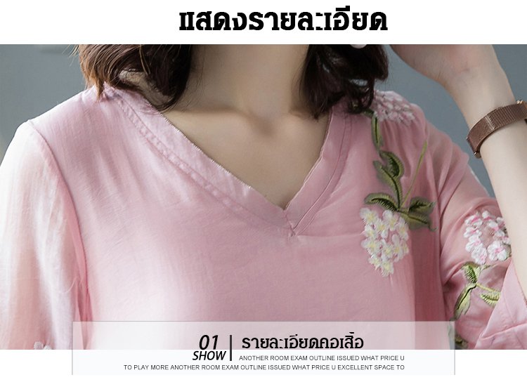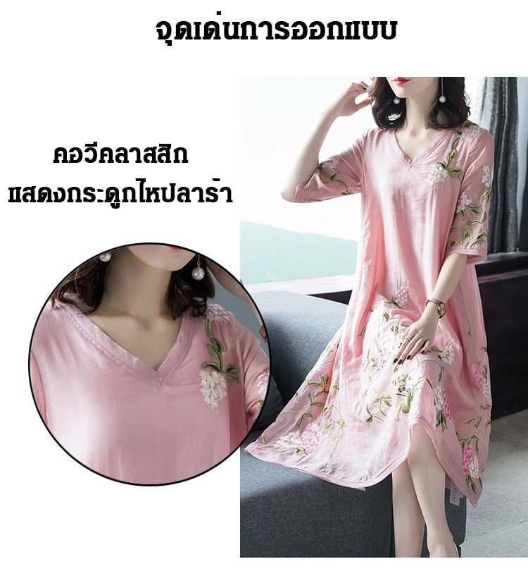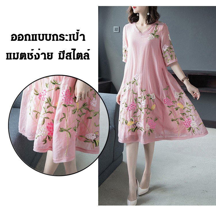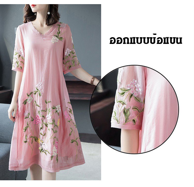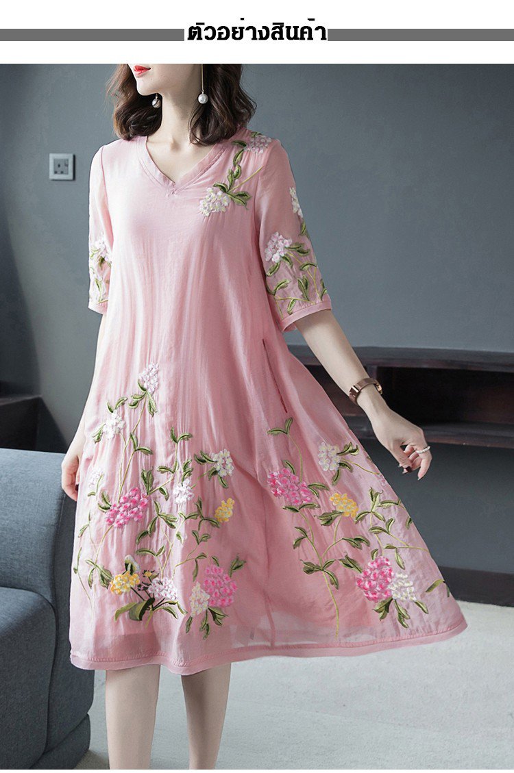 ชุดเดรสปักลายทรงหลวมไซส์ใหญ่